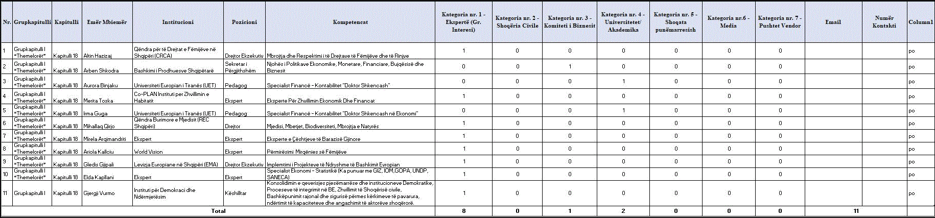 Tabela "Anëtarësia e Tryezave PPIE"